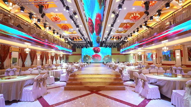 鉑金大廳—色彩濃烈,現(xiàn)代式裝修,面積560㎡,層高6米,開(kāi)合大屏配合舞美燈光,唯美震撼,可承接30桌的中型宴會(huì);12米長(zhǎng)的可移動(dòng)T臺(tái)收起后,就變成了可容納400人同時(shí)落座的大型多功能會(huì)議室。
